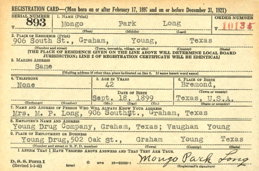 How many MP Longs could there be in 1900 Texas, and druggists to boot? Could this be the same Monroe Park Long we’re related to? Although the dates matched up, the Longs we knew were in Graham, not Bremond. According to Google, Bremond is a three hour drive from Graham – it may have taken a couple days to get there in 1900. Not a reasonable commute. Eli and I were stumped for a couple weeks, trying to figure out whether this MP Long was our ancestor.